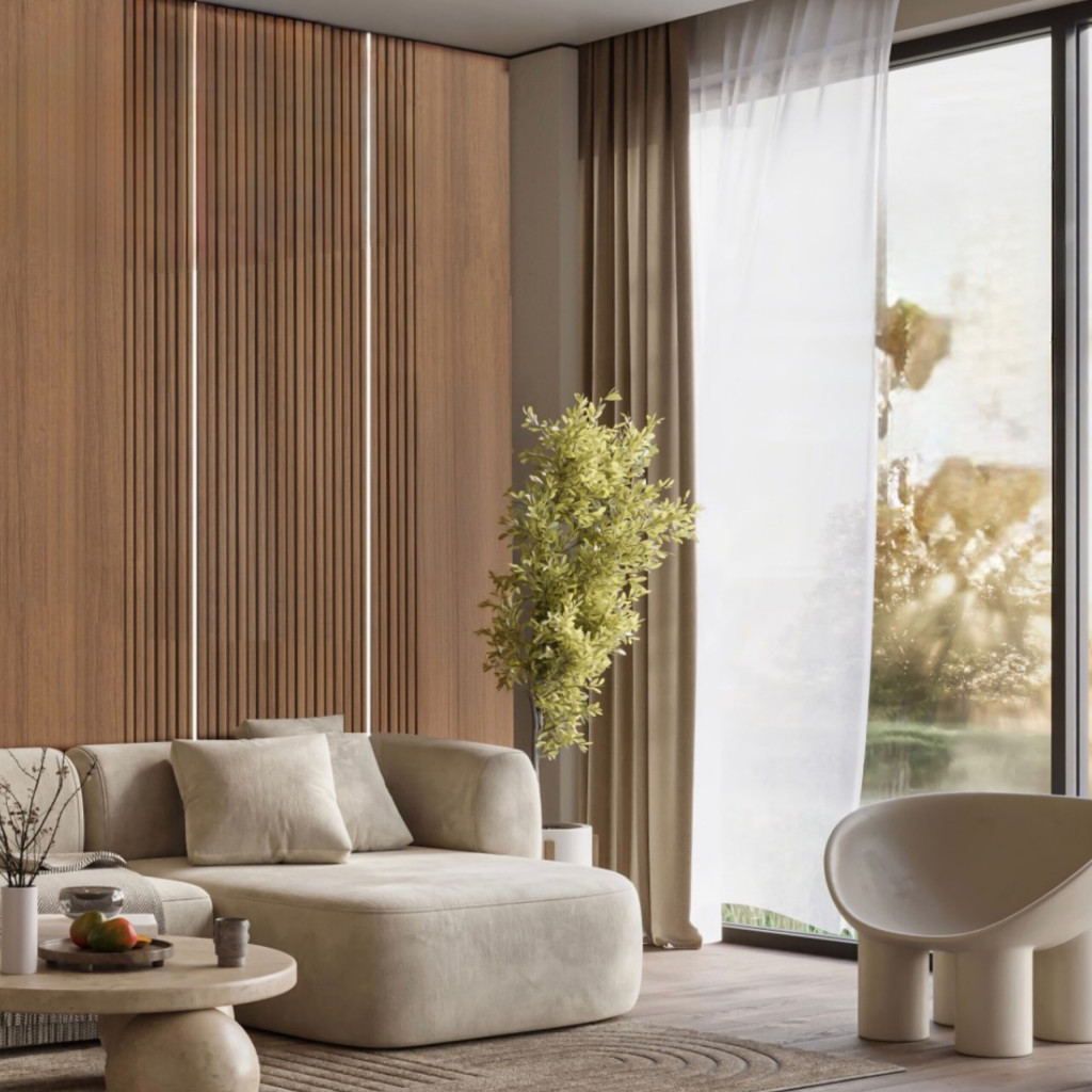 Lamellás dizájn: A figyelemfelkeltő, lamellás felépítés modern, elegáns és texturált megjelenést kölcsönöz a falaknak.