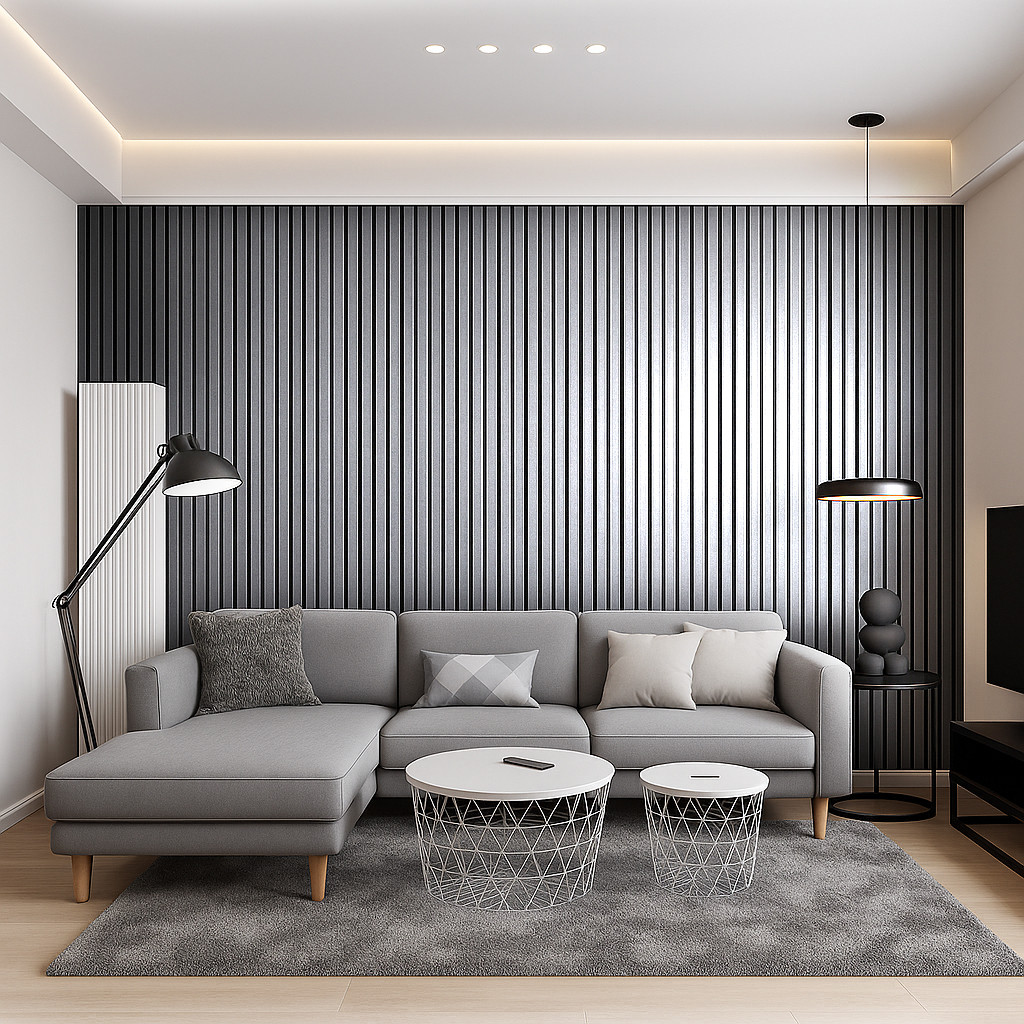 Lamellás dizájn: A figyelemfelkeltő, lamellás felépítés modern, elegáns és texturált megjelenést kölcsönöz a falaknak.