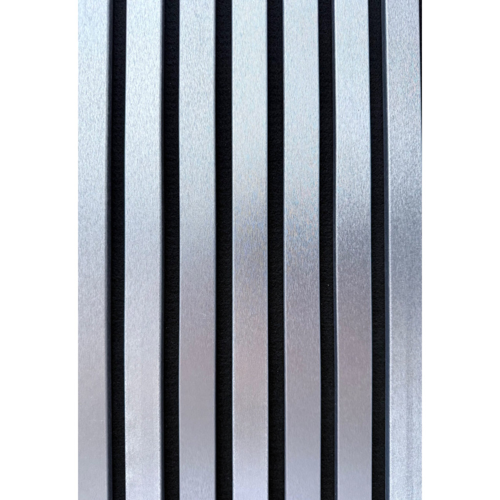 Modern, világos ezüst metál furnér: Az ezüst furnér eleganciát és modernitást sugároz, így a panel egyszerre funkcionális és esztétikailag lenyűgöző díszítőelem.