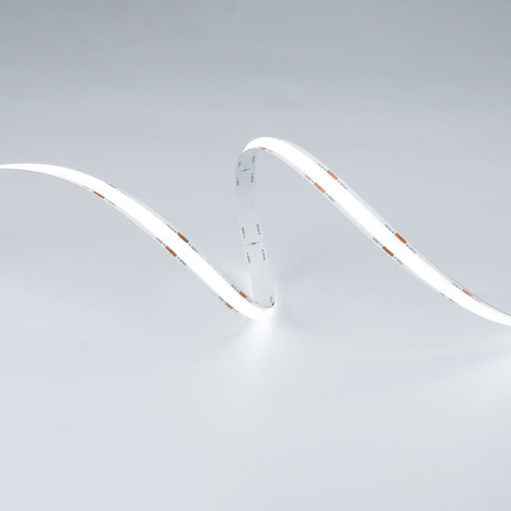 Ultra-modern 4W-os SOB LED szalag kristálytiszta hideg fehér (6000K) fényben. Teljesen homogén, pontmentes fényvonal és CRI 90 színvisszaadás a legmagasabb esztétikai igényekhez.