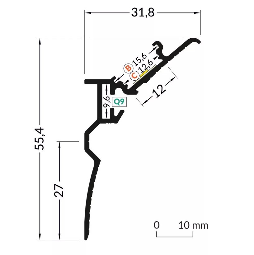 - Kompatibilitás: Maximum 12 mm széles LED szalagok beépítésére alkalmas.